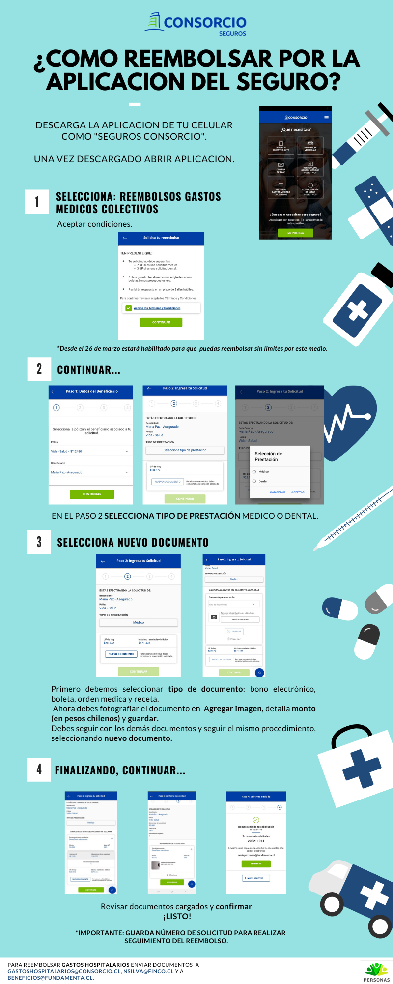 Si haces click aquí, podrás ver una infografía con el paso a paso para enviar tu solicitud de reembolso utilizando la página Web de Consorcio.